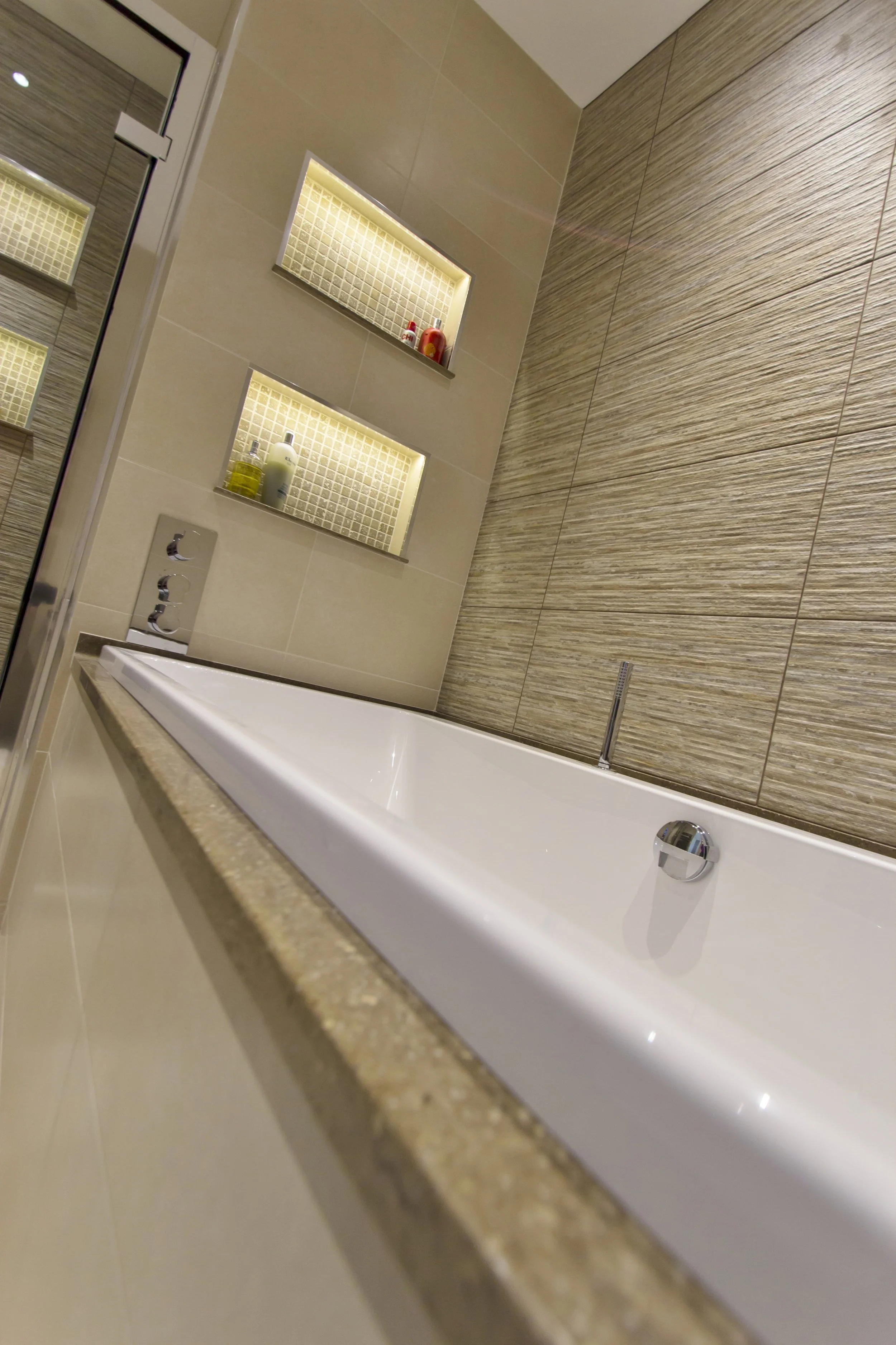If you have the space for a shower and a bath, then why not? - This bathroom has it all and is divided beautifully. The tile choices and colours make this a room that represents the home owners wonderful taste.