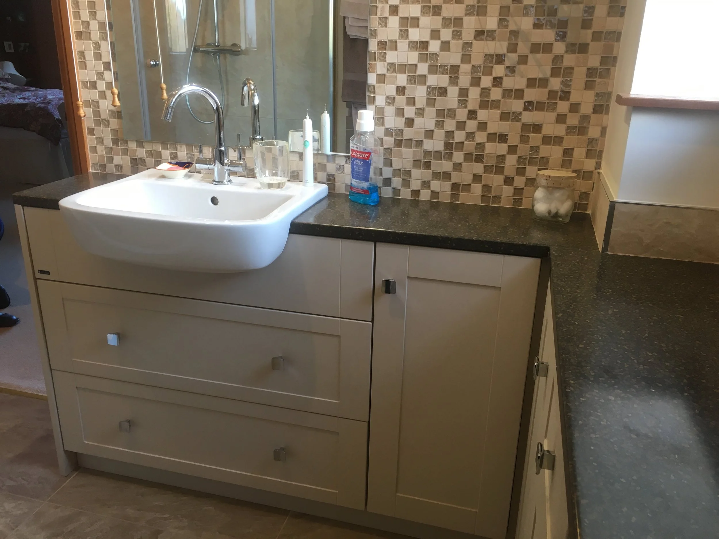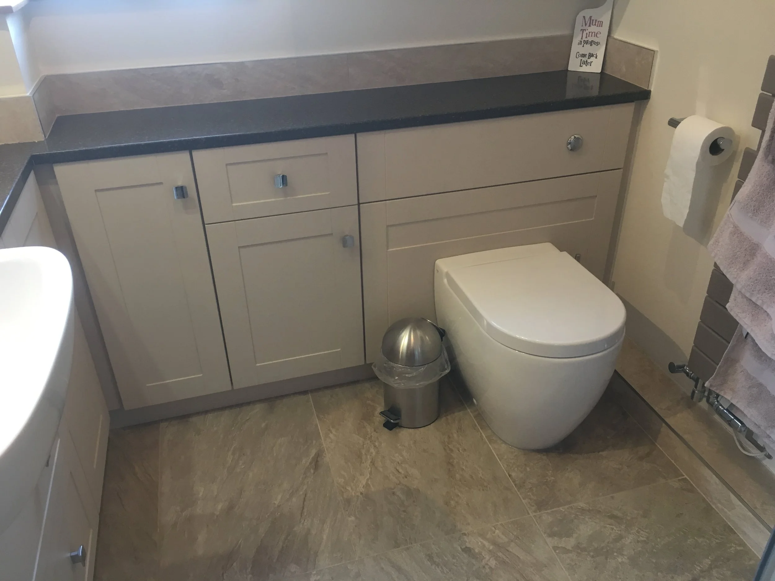In this room our team were able to utilise the space with lots of storage solutions whilst producing a beautiful space finished with natural tones.